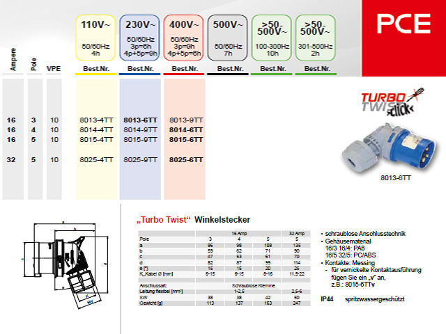 PCE > „Turbo Twist“ Winkelstecker L Blue (Winkelstecker)
